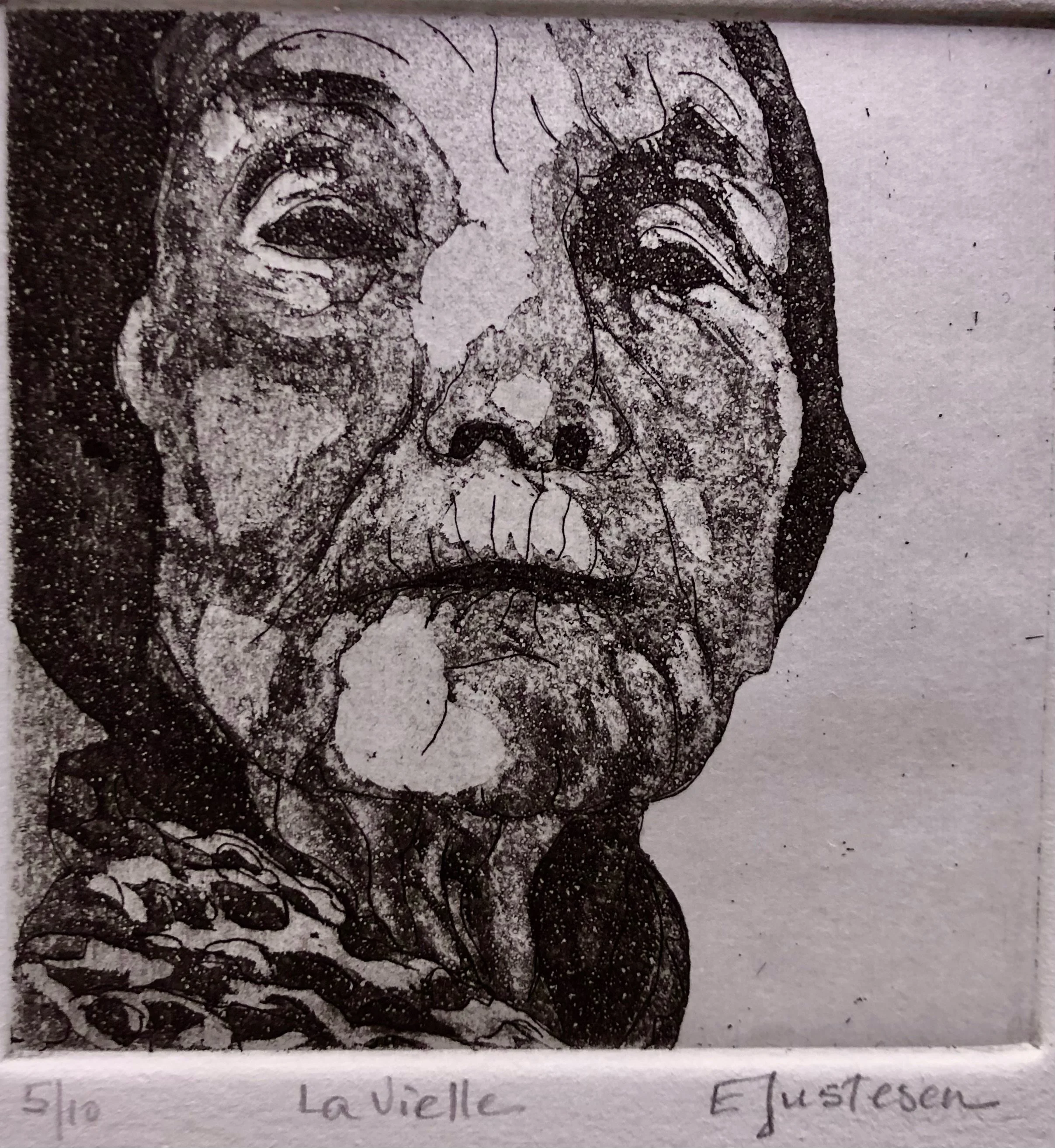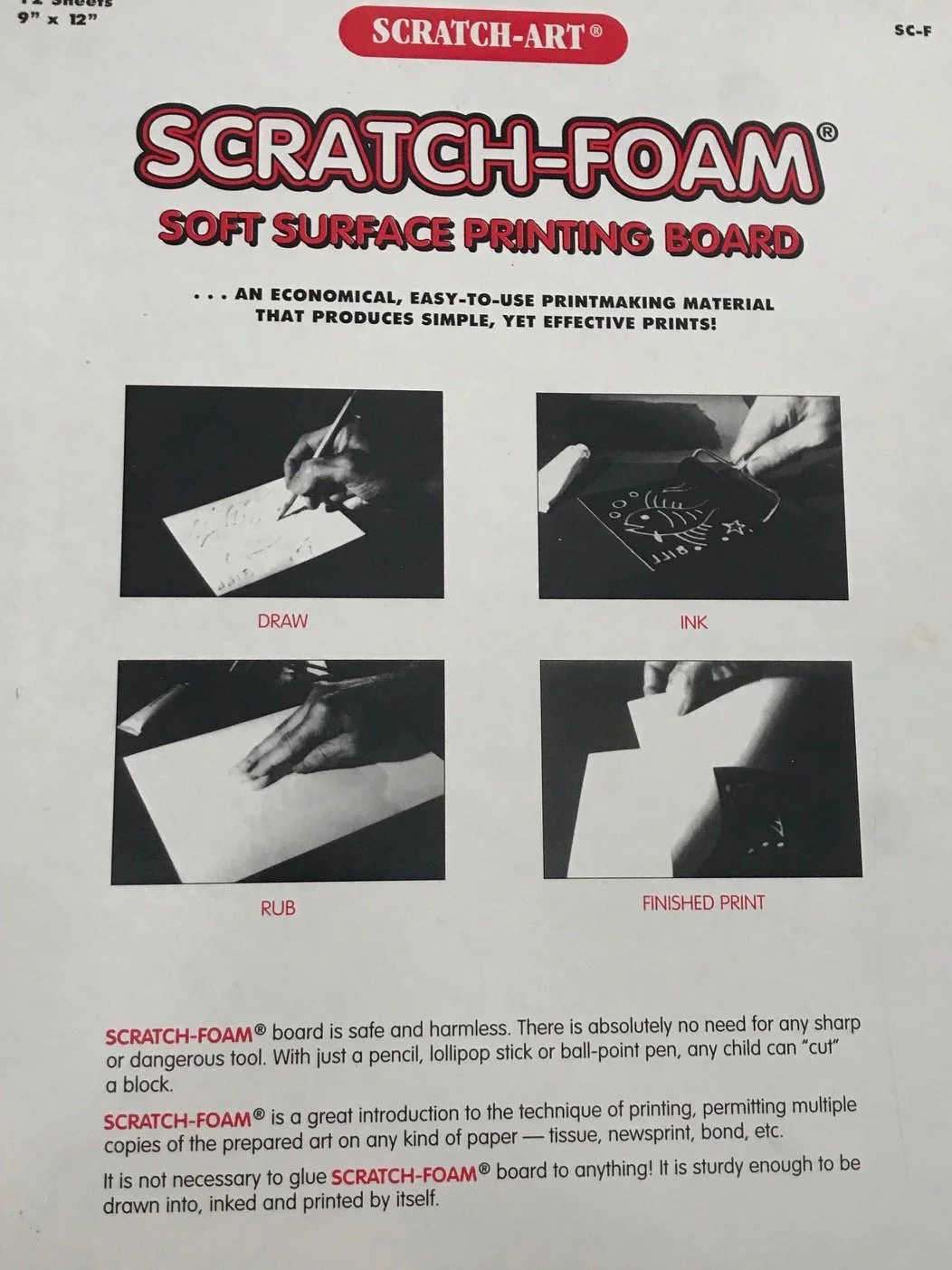 The July “In-between” at Joyce Bauerle’s on July 14 was a workshop on “Scratch-Foam.” One draws an image deep into the foam plate, prints a few, then starts cutting up and inking sections using the white line as a guide. It’s a bit like a reduction print techinique. Click or tap an image to see an enlargement.