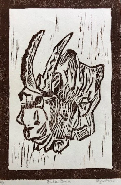 Block Print Demo — Saturday, June 8 by Lynn Evey; 12:30 to 2:30 PM. Drop-in. Free — This demo will introduce you to the printmaking process of Block Printing. This is the technique where an image is carved into a block of rubber, linoleum or wood. You will see finished examples of prints with their blocks and see a rubber block in progress. An inking station will be available to try your hand at printing a sample block.